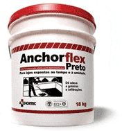 O Anchorflex Preto é uma emulsão com alto teor de sólidos à base de cimento asfáltico policondensado enriquecida com polímeros, destinada à impermeabilização de superfícies cimentícias ou como mastique para preenchimento de juntas de pisos de concreto